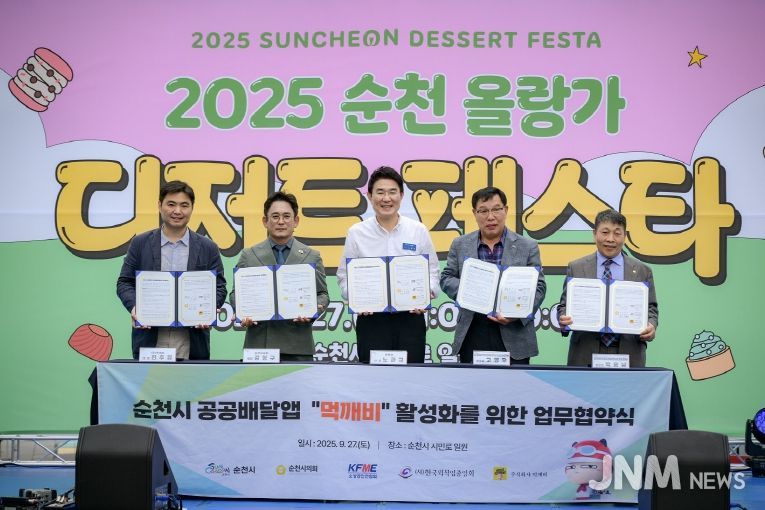 제이앤엠뉴스 | 순천시는 지난 27일 시민로 일원에서 열린 순천 올랑가 디저트 페스타 행사에서 공공배달앱 ‘먹깨비’ 활성화를 위한 업무협약식을 개최했다.