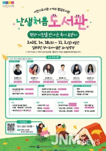 제이앤엠뉴스 | 이천시 도서관은 오는 10월 18일부터 경기도자미술관에서 열리는 ‘난생처음 도서관’의 사전 신청 접수를 10월 1일 10시부터 시작한다고 밝혔다. ‘난생처음 도서관’은 시민 누구나 야외에서 책과 함께 다양한 체험을 즐길 수 있도록 마련된 특별한 야외 팝업도서관이다.