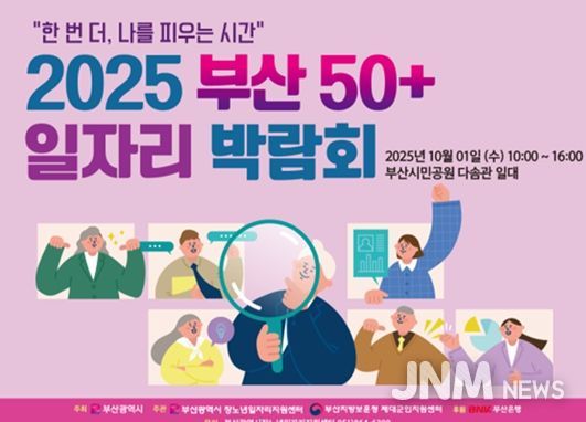 제이앤엠뉴스 | 부산시는 내일(10월 1일) 오전 10시부터 오후 4시까지 부산시민공원 다솜관 일대에서 신중년 세대의 인생 2막 도전을 지원하는 '2025년 부산 50플러스(+)일자리 박람회'를 개최한다고 밝혔다.
