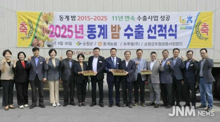 한편, 2025년 동계 밤 수출은 약 250톤, 6억 5,000만 원 규모에 이를 것으로 예상되며, 이번 선적을 계기로 지역 농가와 관계기관의 기대가 더욱 커지고 있다.