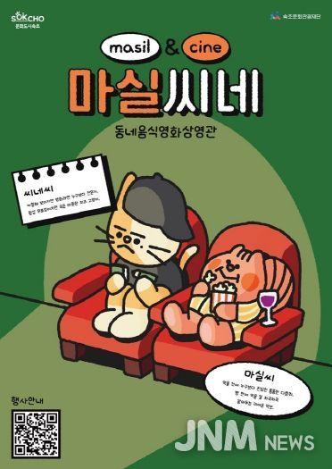 ‘마실씨네’는 소상공인 가게에서 영화를 상영하며 다양한 음식을 함께 즐길 수 있도록 기획된 프로그램이다. 이를 통해 시민과 관광객에게 새로운 문화 체험을 제공하고, 지역 상권 활성화와 속초의 음식문화 확산에도 앞장선다는 계획이다.