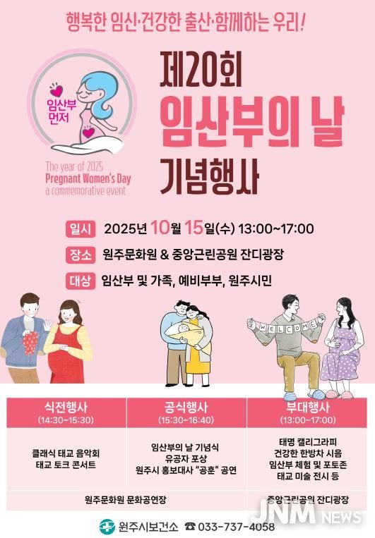 제이앤엠뉴스 | 원주시보건소는 임산부의 날을 맞아 오는 15일 원주문화원에서 임산부와 가족, 예비부부, 그리고 시민 모두가 함께하는 ‘임산부의 날 기념행사’를 개최한다.