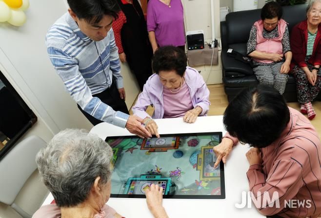 건전한 여가활동 지원 분야의 핵심 수단으로는 스마트 테이블이 설치됐다. 기능성 책상인 스마트 테이블은 놀이 프로그램이 탑재돼 있다. 그중 두뇌 훈련형 콘텐츠는 어르신의 치매 예방에도 도움이 되어 복지관 등에 확산되고 있다.