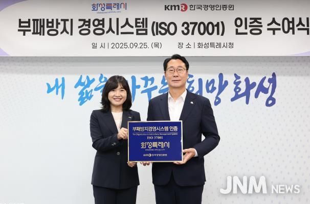 제이앤엠뉴스 | 화성특례시가 국제표준화기구(ISO)에서 제정한 부패방지경영시스템 (ISO37001) 인증을 획득했다.