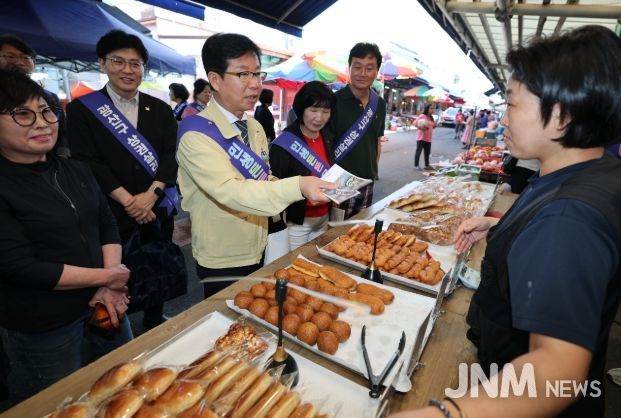제이앤엠뉴스 | 박병규 광산구청장과 광산구 공직자들이 1일 송정매일시장에서 추석 맞이 명절 장보기 행사를 진행했다.