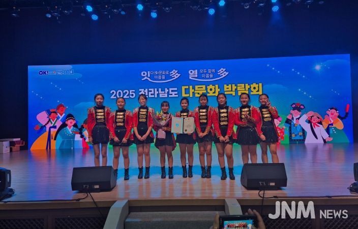 제이앤엠뉴스 | 전남 곡성군은 지난 27일 화순 하니움문화스포츠센터에서 개최된 ‘2025년 전라남도 다문화 박람회’의 전라남도 문화예술 경연대회에서 곡성지역아동센터의 어린이 난타 “투드림 난타팀”이 우수상을 받았다고 전했다.