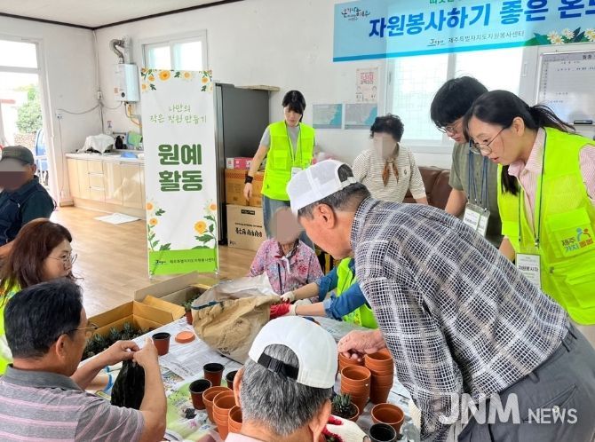 제이앤엠뉴스 | 제주특별자치도사회서비스원은 지난 9월 30일, 성산읍 신풍리경로당에서 어르신들과 함께하는 원예 자원봉사 활동을 실시했다.