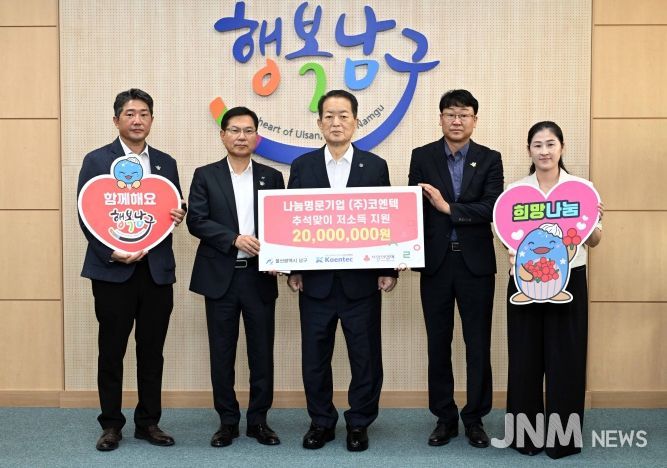 제이앤엠뉴스 | ㈜코엔텍(대표이사 김재일)은 1일 남구청을 방문해 추석을 맞아 남구 관내 저소득층을 위한 후원금 2,000만 원을 전달했다.