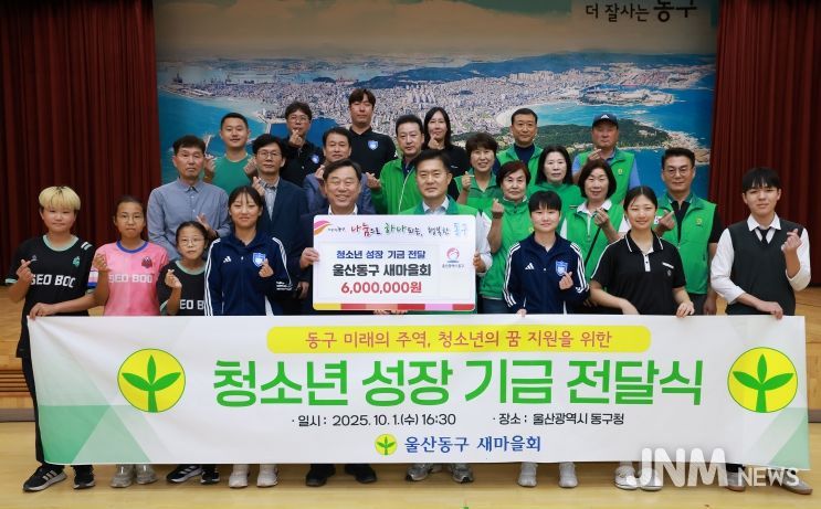제이앤엠뉴스 | 울산 동구 새마을회는 10월 1일 오후 4시 30분 울산 동구청에서 김종훈 동구청장과 학교 관계자가 참석한 가운데 청소년 성장 기금 전달식을 가졌다.