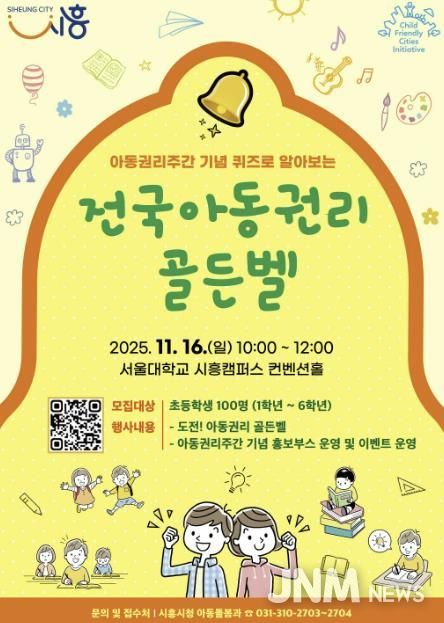 제이앤엠뉴스 | 시흥시는 오는 11월 16일 오전 10시, 서울대학교 시흥캠퍼스 컨벤션홀에서 열리는 ‘퀴즈로 알아보는 전국 아동권리 골든벨’에 참가할 초등학생을 10월 31일까지 모집한다.
