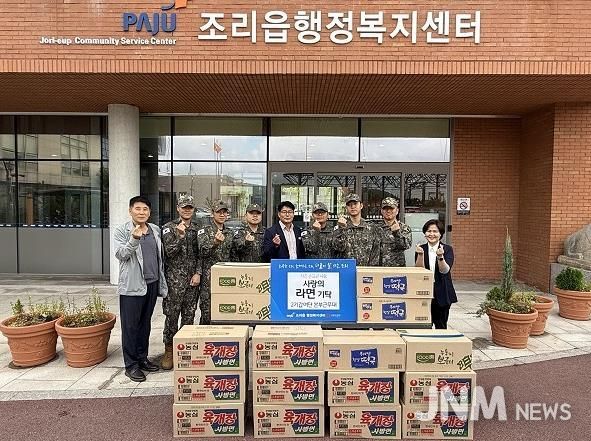 제이앤엠뉴스 | 파주시 조리읍은 지난 29일, 제2기갑여단 본부근무대가 추석을 맞아 지역 내 어려운 이웃을 돕기 위해 컵라면 등 즉석식품 16상자를 기탁했다고 밝혔다.