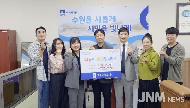 제이앤엠뉴스 | 수원시 영통구 광교1동은 ㈜이언에듀케이션으로부터 이웃돕기 성금 300만원을 기탁받았다고 밝혔다.