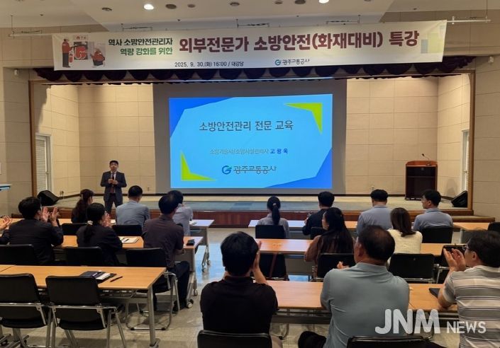 제이앤엠뉴스 | 최근 잇따른 지하철 화재 발생으로 승객들의 안전 우려가 높아지고 있는 가운데, 광주교통공사(사장 조익문)가 소방안전관리자 역량 강화 특강을 펼치며 현장 근무자들의 위기 상황 대응 능력 제고에 나서고 있다.