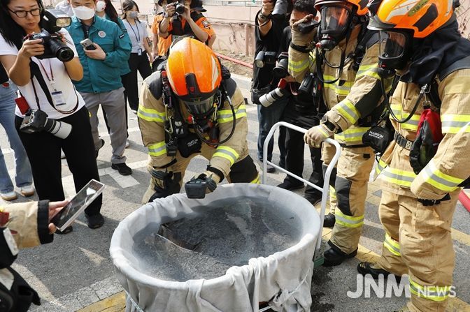 이와 관련해 서울소방재난본부는 10월 1일 노원구 상계마들 재건축 예정 아파트에서 전기 이륜차·개인형 이동장치 등 리튬이온 배터리 화재 위험성을 알리기 위해 실내 충전을 가정한 실물 화재 실험을 진행했다.