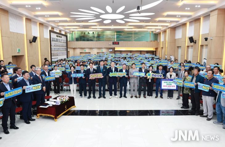 결의대회에는 구복규 화순군수, 오형열 군의회 의장을 포함한 군의원 10명이 참석해 피켓을 들고 화순군의 적극적인 참여 의지를 나타냈다.
