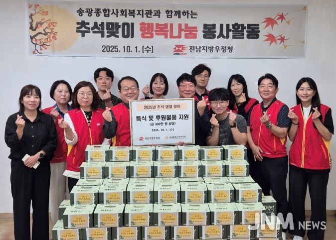 제이앤엠뉴스 | 전남지방우정청은 지난 1일 추석 명절을 맞아 광산구 소재‘송광종합사회복지관’을 방문하여 배식 봉사활동 및 후원물품 전달행사를 진행했다고 밝혔다.