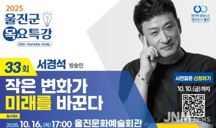 제이앤엠뉴스 | 울진군은 오는 10월 16일 오후 5시 후포면 울진문화예술회관에서 제33회 울진군 목요특강을 개최한다.