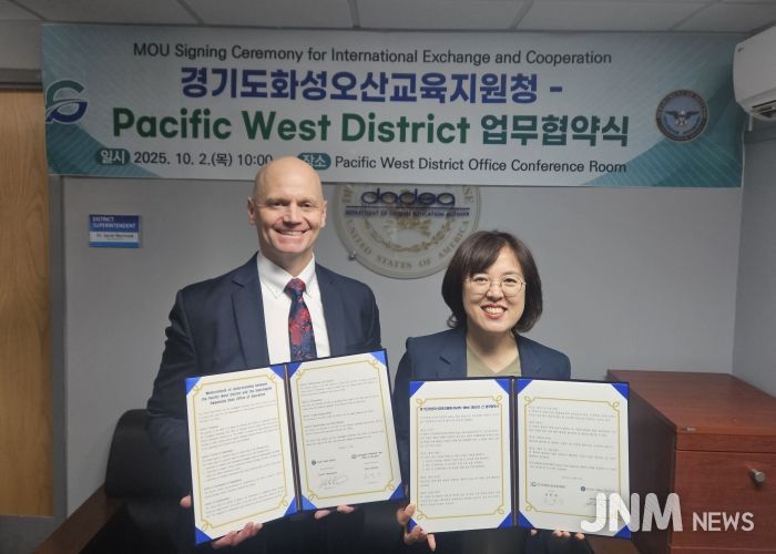 제이앤엠뉴스 | 화성오산교육지원청은 10월 2일 미국방부교육청 대회의실에서 미국 Pacific West District와 국제교류협력 업무협약(MOU)을 맺고, 학생 맞춤형 글로벌 교육 프로그램을 본격적으로 추진한다.