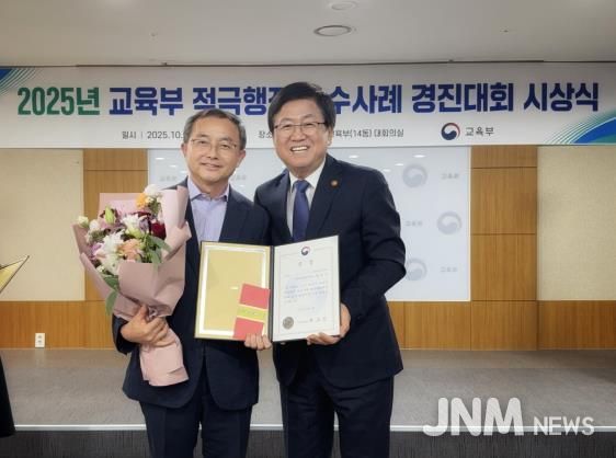 제이앤엠뉴스 | 충남교육청은 교육부 주관 ‘2025년도 상반기 적극행정 우수사례 경진대회’에서 ‘장려’ 등급에 선정됐으며, 충남교육청 총무과 복정수 민원기록팀장과 청라초등학교(보령) 양윤호 교사가 우수공무원으로 선정되어 교육부장관 표창을 받았다고 2일 밝혔다.