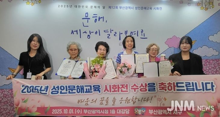 제이앤엠뉴스 | 부산 서구는 지난 1일 열린‘2025년 제12회 부산광역시 성인문해교육 시화전’에서 관내 학습자 5명이 최우수상과 특별상 등을 수상했다고 밝혔다.