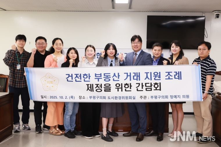 제이앤엠뉴스 | 인천 부평구의회 정예지 의원(더불어민주당 비례)은 지난 10월 2일 부평구의회 도시환경위원회실에서 '인천광역시부평구 건전한 부동산 거래 지원 조례'제정을 위한 간담회를 개최했다.