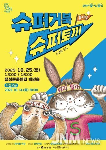제이앤엠뉴스 | 달성문화재단은 오는 25일 오후 1시와 4시, 달성문화센터 백년홀에서 ‘2025 달성 아동극 시리즈’의 다섯 번째 공연 ‘슈퍼거북 슈퍼토끼’를 개최한다고 밝혔다.