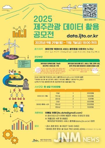 제이앤엠뉴스 | 제주특별자치도와 제주관광공사는 오는 11월 7일까지 온라인 채널을 통해 ‘2025년 제주관광 데이터 활용 공모전’ 참가자를 모집하고 있다고 2일 밝혔다.