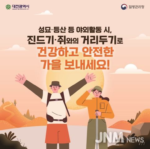 제이앤엠뉴스 | 대전시는 성묘와 등산, 농작업 등 야외활동이 늘어나는 가을철을 맞아 시민들에게 진드기·설치류 매개 감염병 예방수칙 준수를 당부했다.