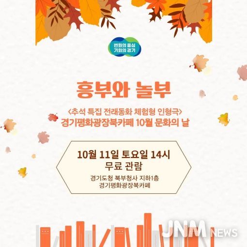 제이앤엠뉴스 | 경기도가 오는 10월 11일 경기평화광장 북카페 원형무대에서 추석 연휴를 맞아 전래동화 인형극 공연 ‘흥부와 놀부’를 공연한다. 이번 행사는 ‘10월 문화의 날’ 프로그램으로, 도민에게 명절의 의미를 되새기고 가족과 함께하는 특별한 시간을 제공하기 위해 기획됐다.