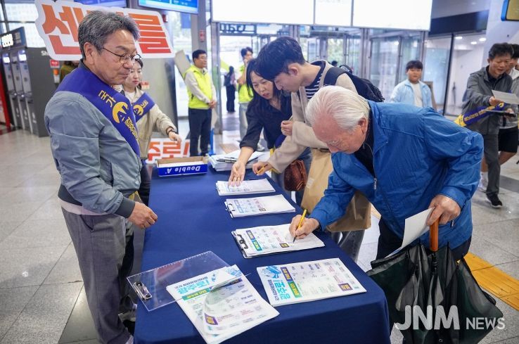 추석 연휴를 맞아 광주를 찾아오는 귀성객을 대상으로 ‘국가AI컴퓨팅센터 유치 캠페인’을 광주버스종합터미널, 광주송정역, 무등산에서 진행했다.