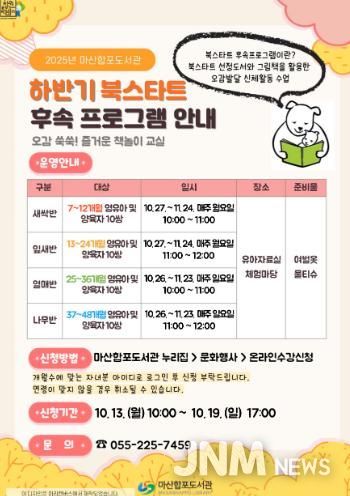 프로그램 참여를 원하는 시민은 마산합포도서관 누리집에서 10월 13일 10시부터 온라인으로 신청할 수 있다.
