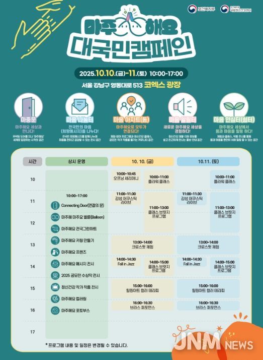 제이앤엠뉴스 | 보건복지부와 국립정신건강센터는 ‘정신건강의 날’을 맞아 10월 10일에서 11일까지 양일간 서울 코엑스 야외광장에서 '마주해요! 대국민 캠페인'을 개최한다.