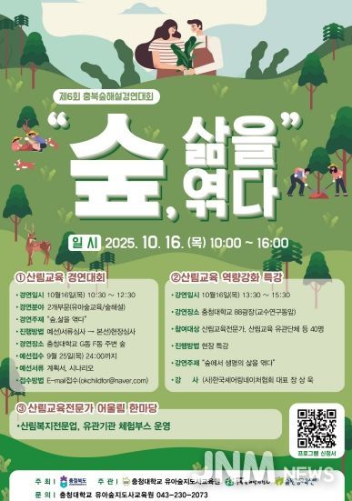 제이앤엠뉴스 | 충북도는 산림교육 전문가의 역량 강화를 도모하고, 도민과 숲의 소중한 가치를 함께 나누기 위해 오는 10월 16일 ‘제6회 충북 숲해설 경연대회’를 충청대학교 캠퍼스 일원에서 개최한다고 10일 밝혔다.