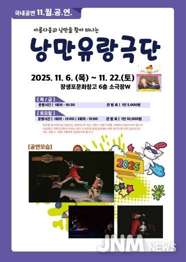 제이앤엠뉴스 | 고래문화재단(이사장 서동욱)은 11월 6일부터 22일까지 어린이를 위한 상설공연으로 ‘낭만 유랑극단’을 총 12회에 걸쳐 무대에 오른다고 밝혔다.