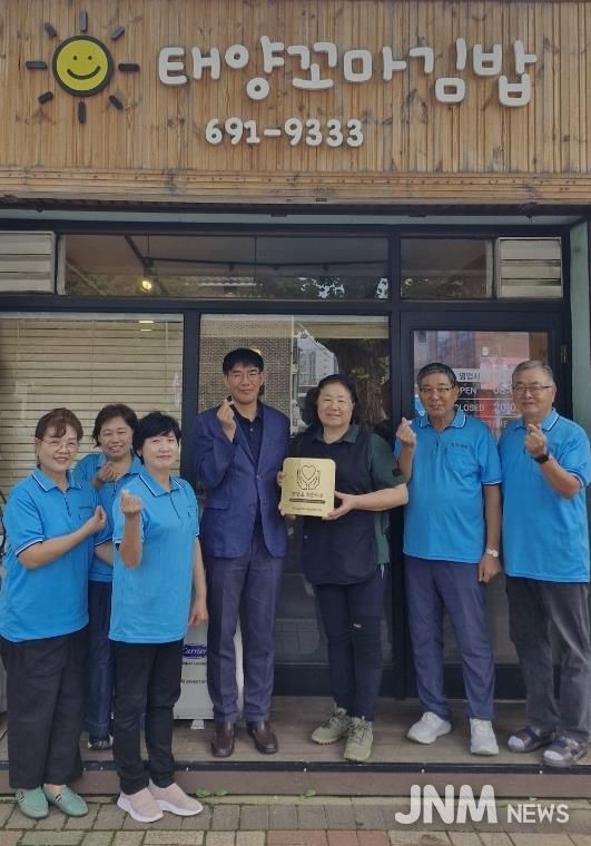 제이앤엠뉴스 | 평택시 팽성읍 지역사회보장협의체는 지난 2일, 나눔 활동에 동참한 ‘태양꼬마김밥’에 ‘착한 이웃’ 현판을 전달했다.
