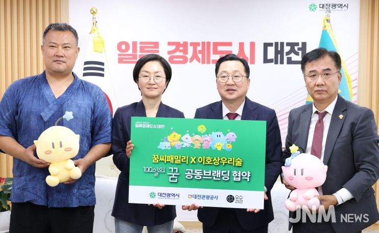 제이앤엠뉴스 | 대전시는 10일 시청 응접실에서 대전관광공사, 우리술협동조합과 함께 공동브랜딩 업무협약을 맺고, 대전 대표 캐릭터 꿈돌이를 적용한 프리미엄 전통주 ‘100일의 꿈’을 출시한다고 밝혔다.
