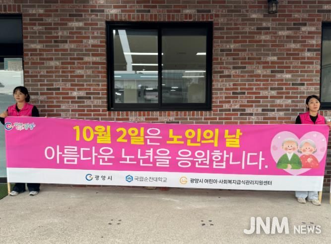 제이앤엠뉴스 | 광양시 어린이·사회복지급식관리지원센터는 지난 10월 2일 노인의 날을 맞아 광양시 가가호호주야간보호센터 앞에서 시민과 어르신을 대상으로 캠페인을 전개했다.