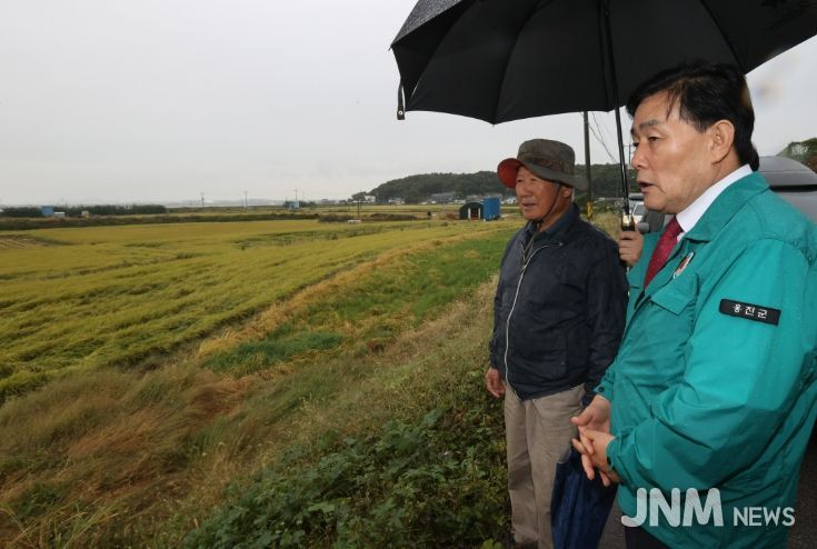 제이앤엠뉴스 | 옹진군수는 지난 6일에 내린 집중호우와 강풍으로 인해 벼 도복 피해를 입은 북도·영흥면을 방문하여 피해 상황을 점검했다.