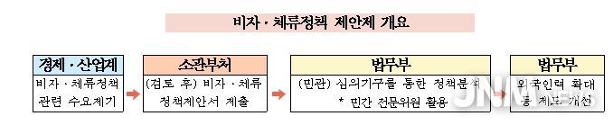또한 체계적·균형적 심의를 통한 비자정책 결정 체계를 강화하고 정책의 예측가능성을 제고하기 위하여 '비자·체류정책심의위원회'의 설치·운영 근거를 법령에 규정하는 내용의 ‘비자·체류정책제안제 법제화’를 추진할 계획이다.