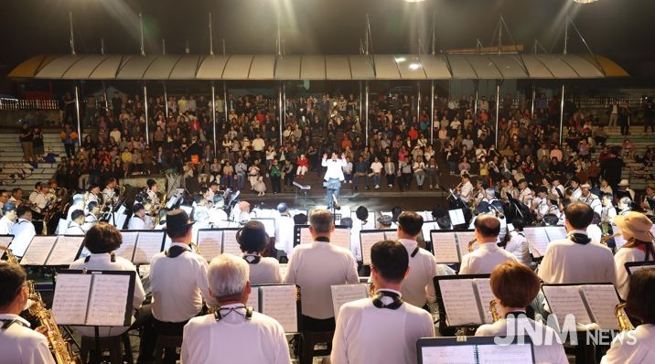 이날은 뉴비전앙상블, 거북이앙상블, 하모니앙상블 등 개별 동아리들이 색소폰 독주와 3중주, 4중주 등 다양한 구성을 통해 각자의 색깔을 살린 무대를 선보였다. 마지막 피날레는 ‘평행선’, ‘머나먼 고향’, ‘만남’ 등 친숙한 곡들이 100인 색소폰 하모니로 울려 퍼지며 시민들의 큰 호응을 받았다.