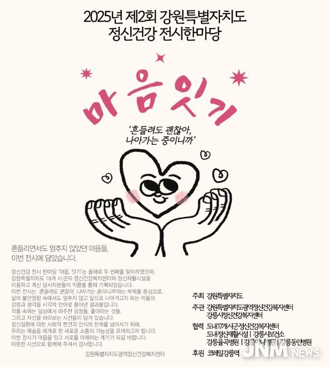 제이앤엠뉴스 | 강릉시는 10월 13일부터 오는 19일까지 강릉역에서 '2025년 제2회 정신건강 전시한마당'을 개최한다.
