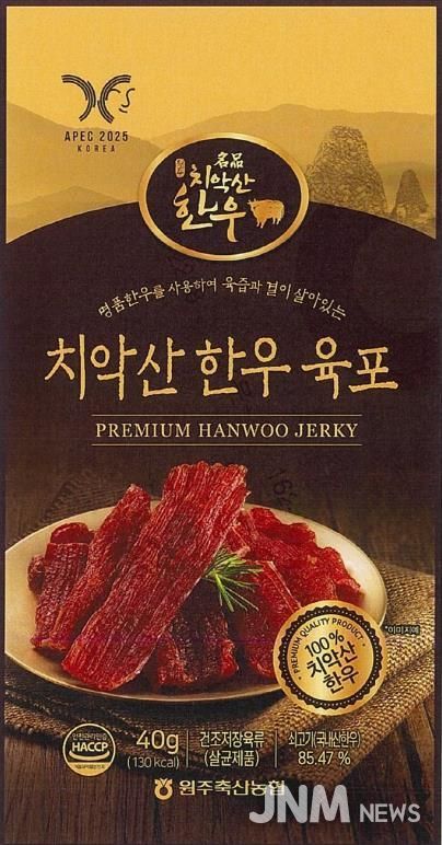 제이앤엠뉴스 | 원주시 대표 한우 브랜드인 치악산한우 육포가 2025년 아시아태평양경제협력체(APEC) 정상회의 공식 협찬품으로 선정됐다.