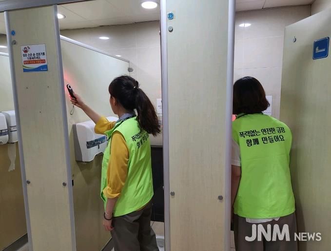 제이앤엠뉴스 | 부산시 금정구는 지난 10월 1일 오후 2시부터 4시까지 장전역과 부산대역 공중화장실을 대상으로 불법촬영기기 설치 여부에 대한 합동점검을 실시하고, 디지털 성범죄 예방 및 불법 촬영 근절을 위한 홍보 캠페인을 전개했다.