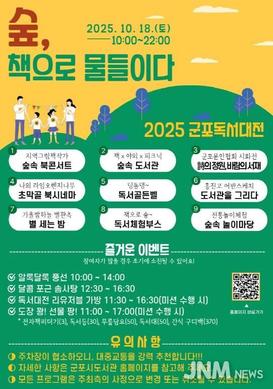 제이앤엠뉴스 | 군포시가 민선 8기 공약인 ‘책의 도시 축제 활성화’를 실현하기 위해 오는 10월 18일 초막골생태공원에서 ‘2025 제11회 군포독서대전’을 개최한다.