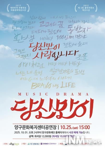 제이앤엠뉴스 | 양구문화재단은 깊어가는 가을, 가족 모두가 함께 즐길 수 있는 뮤지컬 ‘당신만이’를 오는 25일 오후 3시, 양구문화복지센터 공연장에서 선보인다.