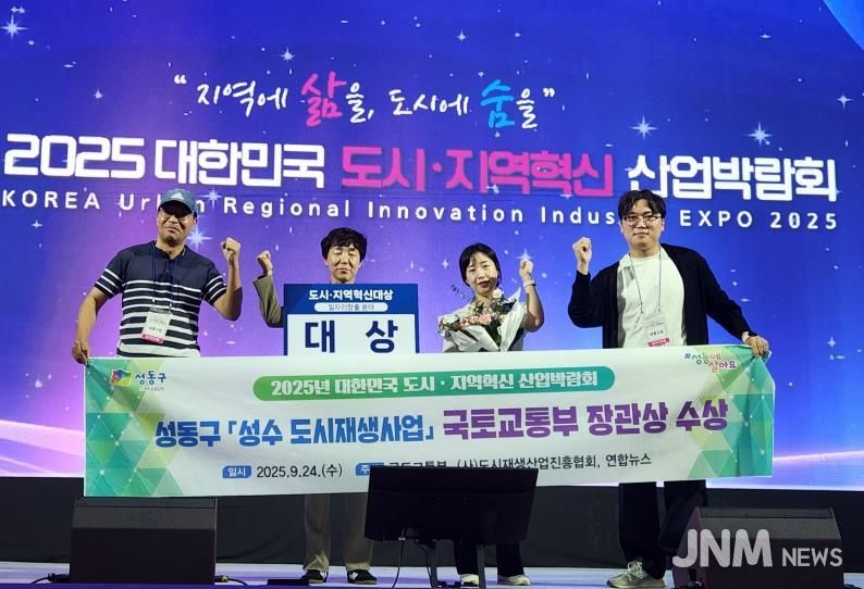 제이앤엠뉴스 | 서울 성동구는 성수동의 비약적 발전을 이끈 ‘성수 도시재생사업’ 성과를 인정받아 ‘2025 대한민국 도시·지역혁신대상’에서 일자리 창출 분야 ‘국토교통부 장관상’을 수상했다고 밝혔다.