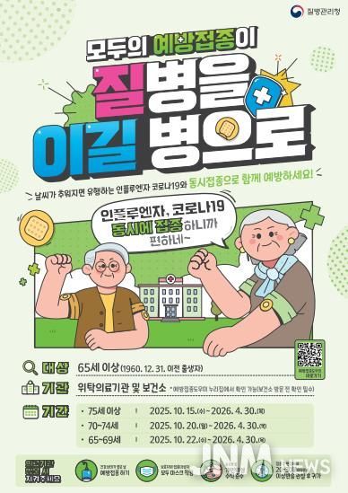 제이앤엠뉴스 | 김제시는 2025-2026절기 인플루엔자(독감)와 코로나19 동시 접종을 관내 위탁의료기관에서 오는 15일부터 실시한다고 밝혔다.