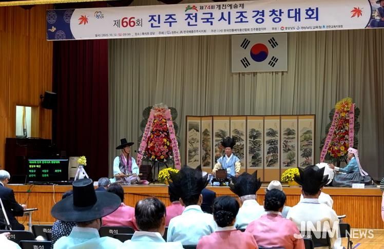 제이앤엠뉴스 | 한국전통예악총연합회 진주통합지부는 지난 12일 촉석초등학교 강당에서 시조경창대회 참가자 및 관람객 등 300여 명이 참석한 가운데 ‘제66회 전국시조경창대회’를 성황리에 개최했다.