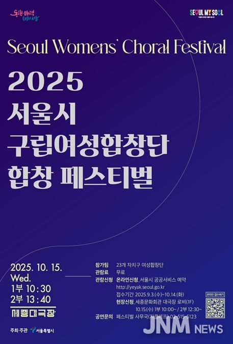 제이앤엠뉴스 | 서울시는 깊어가는 가을을 맞아 오는 10월 15일 오전 10시 30분부터 세종문화회관 대극장에서 '2025 서울시 구립여성합창단 합창 페스티벌'을 개최한다. 이번 페스티벌에는 서울시 23개 자치구 여성합창단 700여 명이 무대에 올라, 아름다운 화음으로 시민들에게 잊지 못할 감동과 따뜻한 추억을 선사할 예정이다.