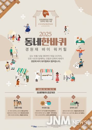 제이앤엠뉴스 | 인천경제자유구역청은 오는 14일과 15일 이틀간 경원재 한옥호텔에서 제2회 경원재 시민페스티벌 ‘2025 동네한바퀴 경원재바이워커힐’을 개최한다고 밝혔다.